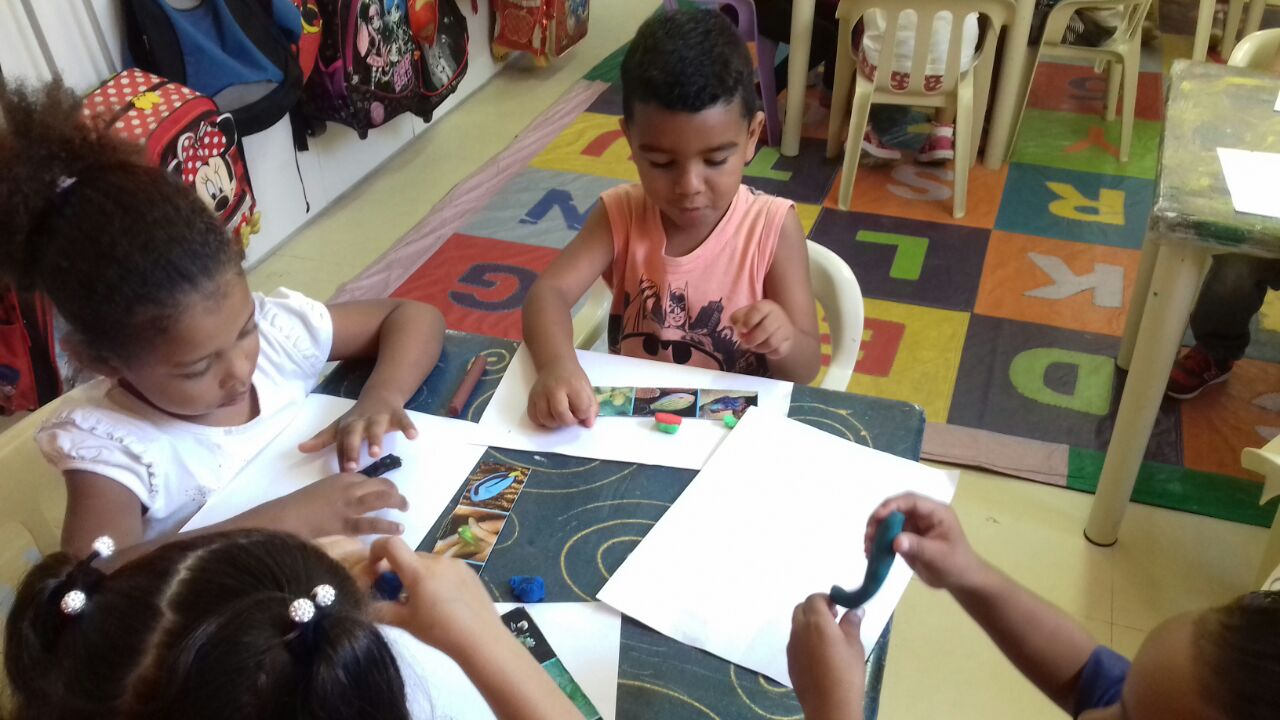 No dia 16 de Novembro, a turma MGII A ,observando figuras as crianças reproduziram com massinha de modelar, com objetivo de apreciar a imagem e coordenação motora.